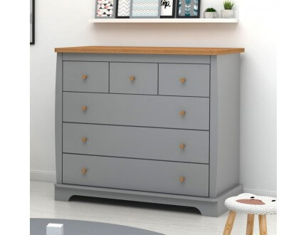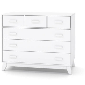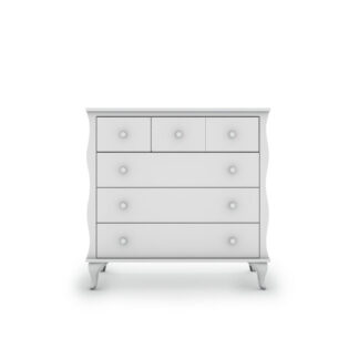 השידה עשויה MDF כולל מגירות, עם פינות מעוגלות למניעת פגיעות ומסילות טלסקופיות שקטות.